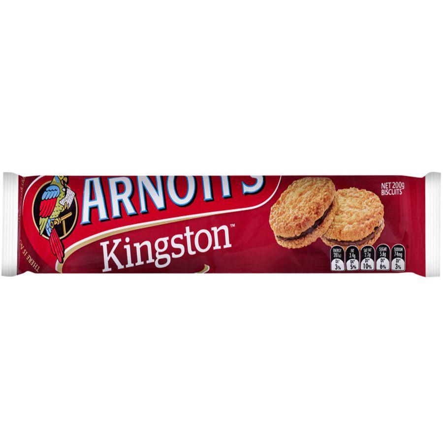 Arnotts Creme Filled Kingston Creams - Experience the joy of Arnott's famous and delicious Kingston cream biscuits. Two home-style, crunchy coconut-oaty biscuits with a rich, smooth choc cream filling. It's no wonder Kingston cream biscuits are a family classic!