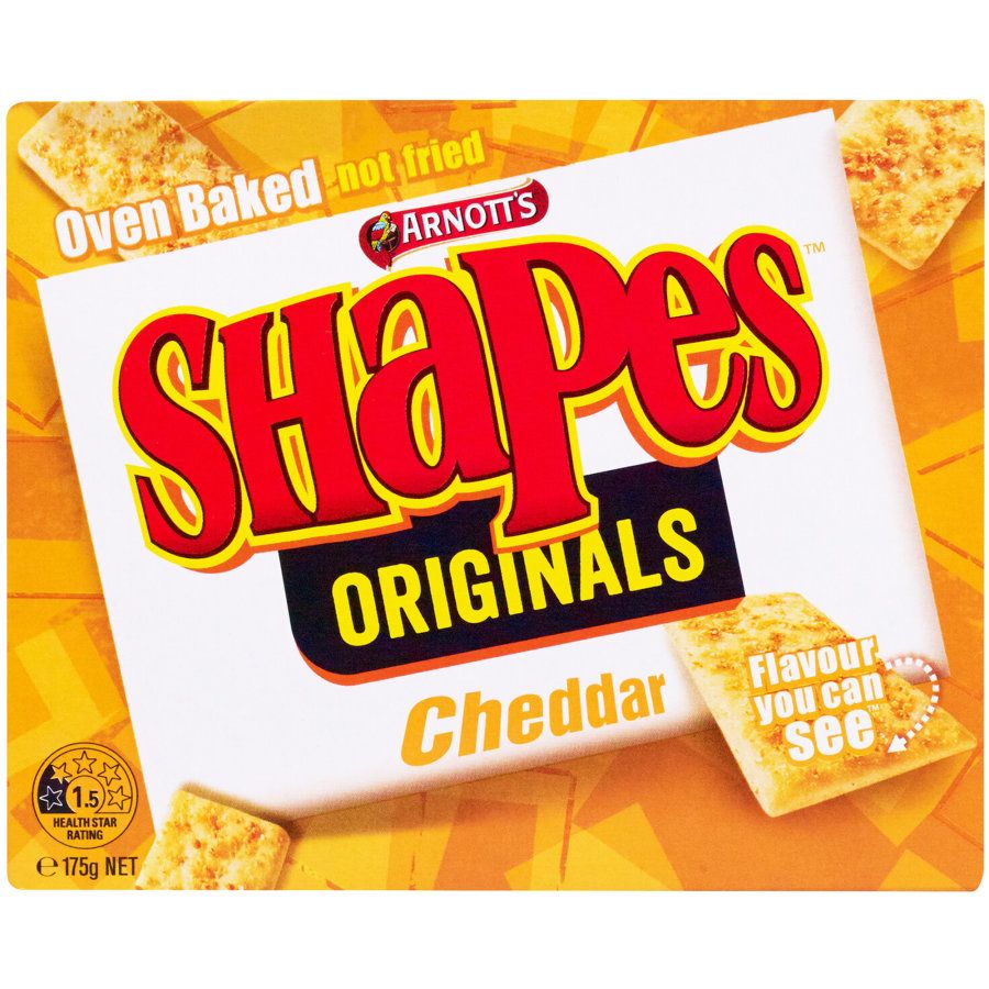 Arnotts Shapes Crackers Cheddar. Shapes has been spreading the fun since the 1950s. New Zealanders love their Shapes and munch their way through over 8 million packs each year!