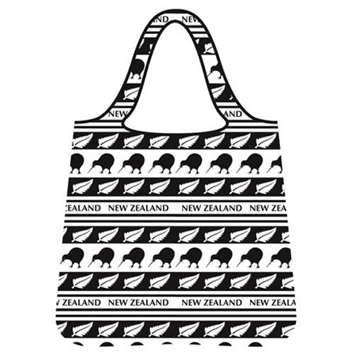 Foldable Kiwi & Fern Bag - Handy shopping bag that folds up into a pouch which fits in your pocket. Printed with Kiwi and silver ferns.