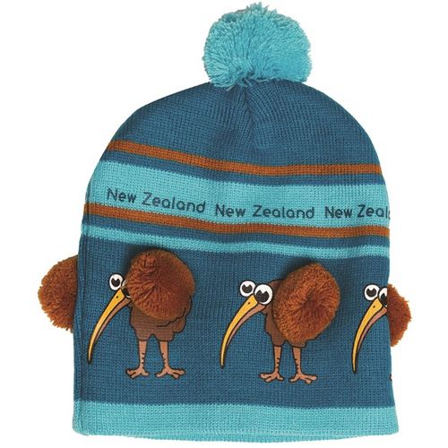 Childs Beanie Kiwi with Pom Poms - Let them know where you're little Kiwi's are from!