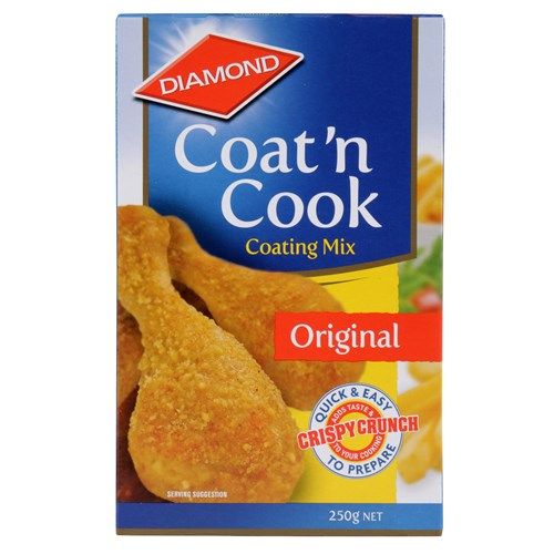 Good food is always about great taste and Diamond Coat n Cook original coating mix is no exception. Diamond Coat n Cook original is the perfect coating to create a great taste and crispy crunch that you will love. Be creative and try it with any variety of meat, fish or vegetables. Perfect taste every time!