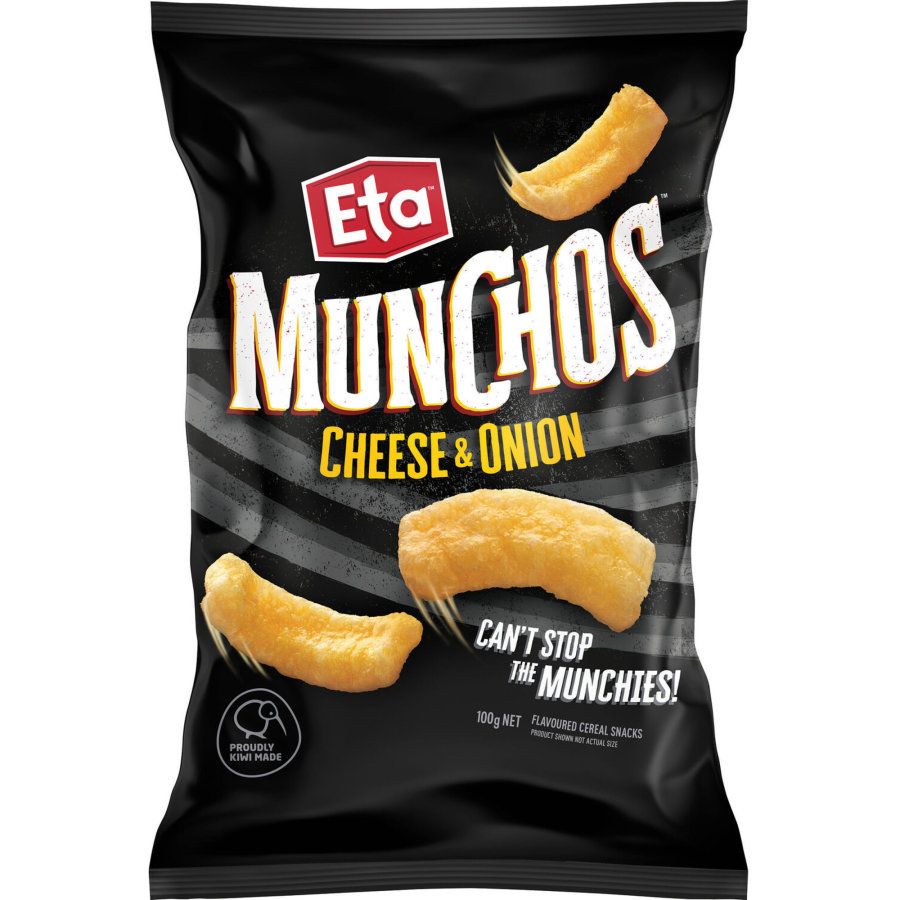 Eta Munchos Cheese & Onion - Can't stop the munchies. Surprise your tastebuds with a full on mouth crackling explosion. Grab a pack, rip into it and satisfy your munchies.
