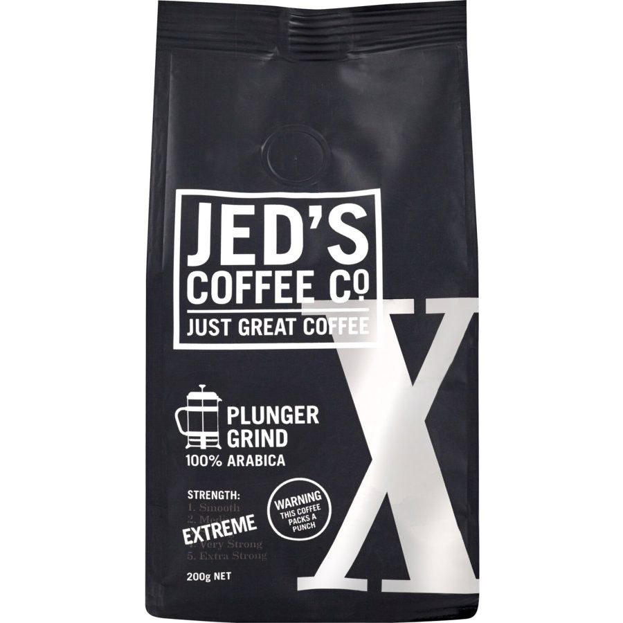 Jeds Coffee Plunger Grind Extreme - As dark as it gets. Intense smoky cocoa notes, without the bitterness. Full bodied.
