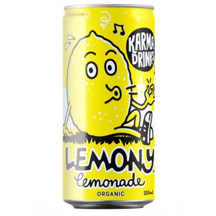 Karma Drinks Lemmy Lemonade - Lemony, like all good lemonades is just the basics ... lemons. There's 31% organic Sicilian lemon juice in every bottle with a splash of grapefruit and some citrus oil to boot. Then we add water and bubbles. That's it.