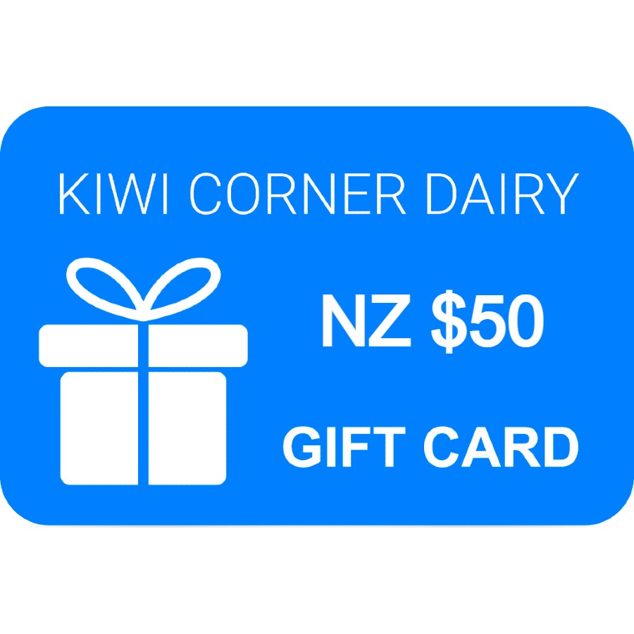 Need a gift in a flash or unsure what to give? Send an e-gift card that can be redeemed for the receivers favourite NZ foods at Kiwi Corner Dairy.