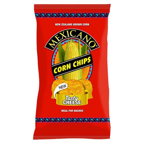 Mexicano Corn Chips Tasty Cheese. The Mexicano Corn Chips range come in a range of flavours, offering a flavour for all palates and dietary requirements. All our products use NZ grown, GM free corn that is processed using the finest ingredients.