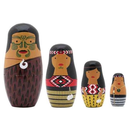 NZ Nesting Dolls Maori Whanau - Help to increase fine motor skills and the different sizes offer a continued challenge. Four Maori family figures each nests inside the other. Dolls measure 14cm H, 10.2cmH, 7.5cm H, 6cm H.
