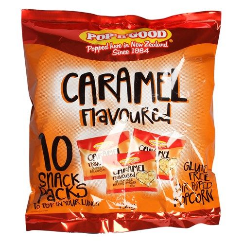 Pop N Good Caramel Popcorn - Air Popped. Wheat and Gluten Free. Cholesterol Free. Free of GMO Ingredients. 10 Pack.