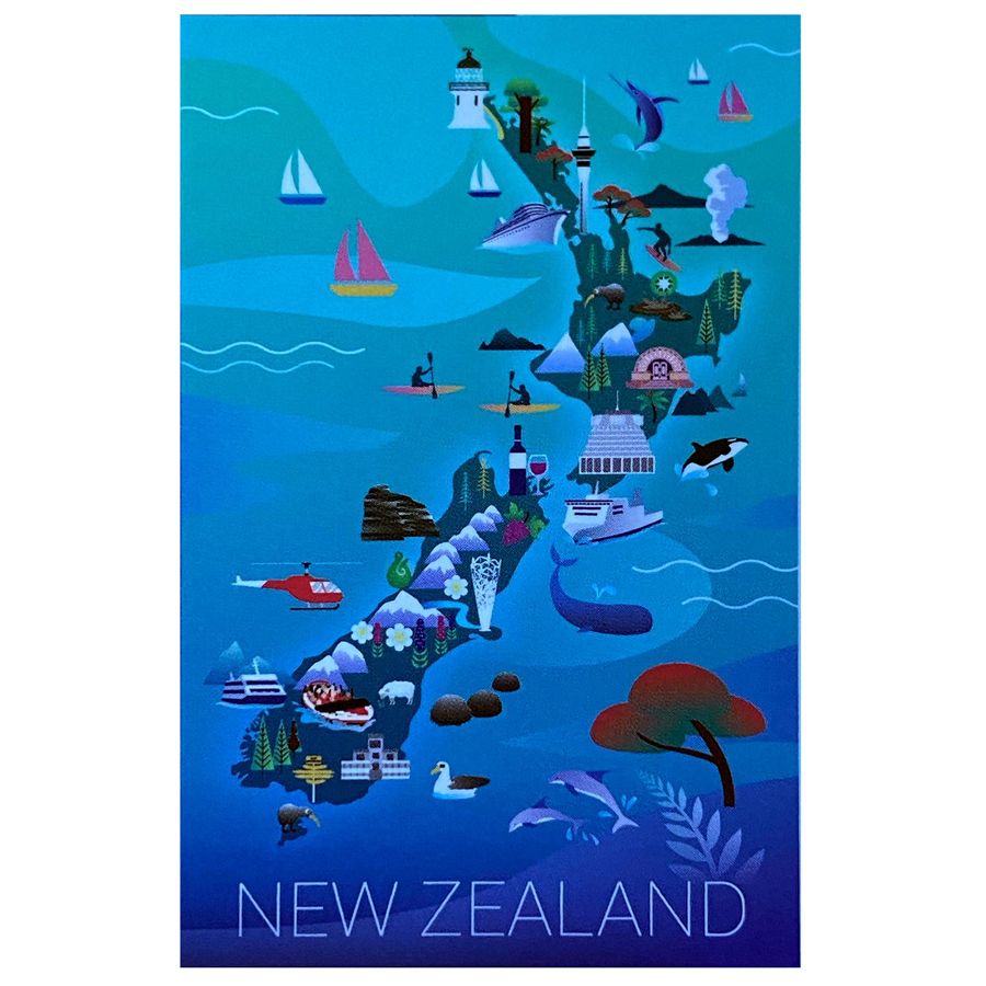 Tea Towel New Zealand Map & Icons - A beautiful tea towel design that is inspired by New Zealand's stunning scenery.