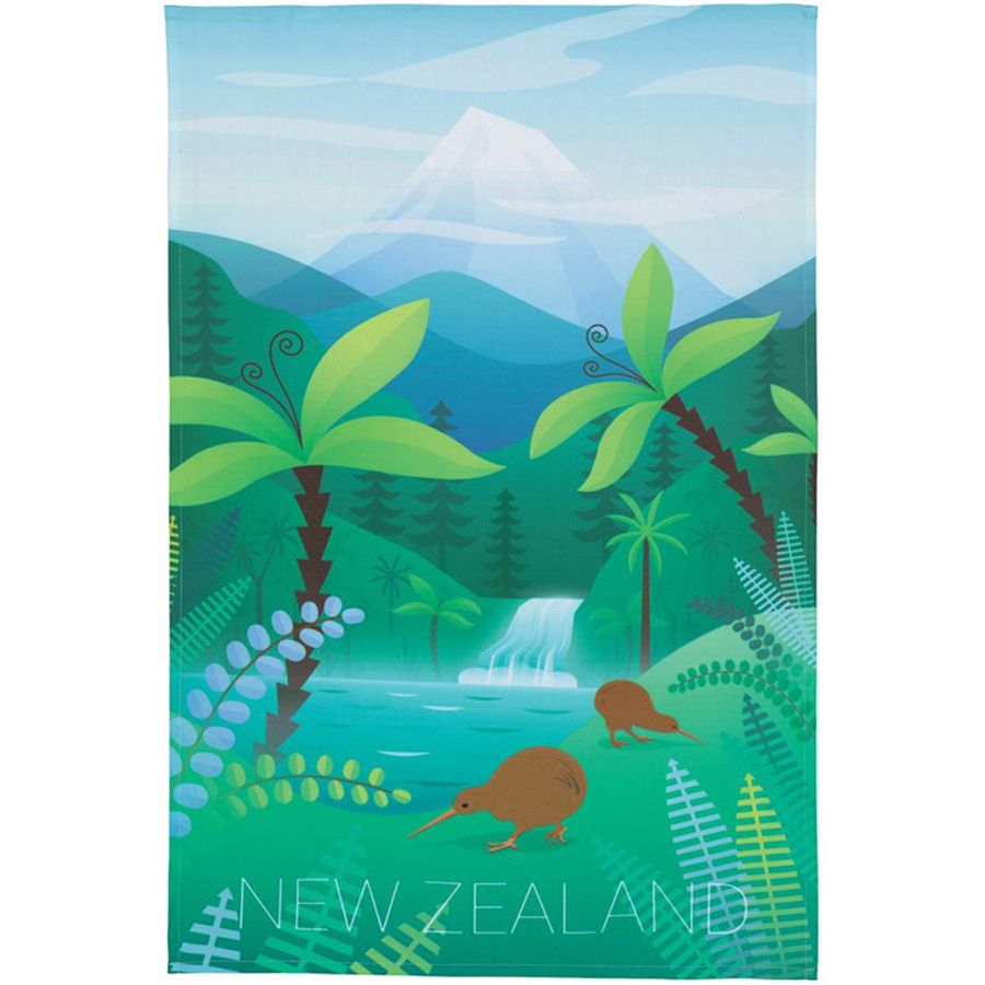 Tea Towel New Zealand Scene Kiwi - A beautiful tea towel design that is inspired by New Zealand's stunning scenery.