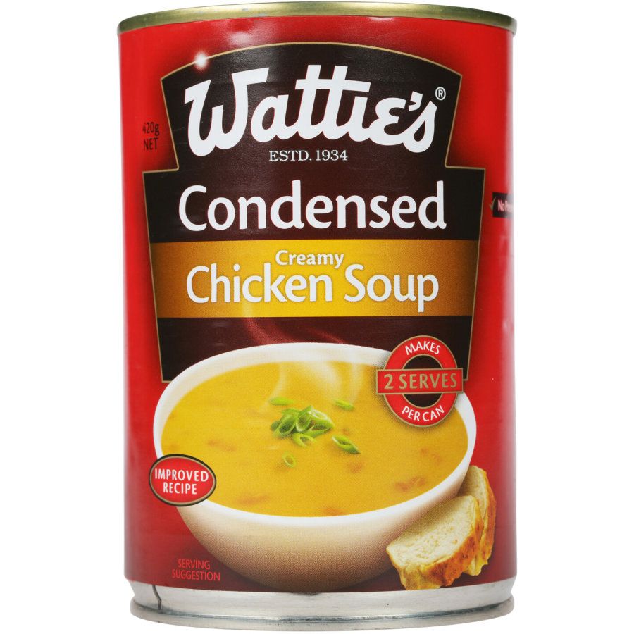 Wattie's Creamy Chicken Soup Condensed - Wattie's condensed creamy chicken soup is a delicious blend of chicken and cream. It is 97% fat free and is a good source of protein. Wattie's condensed soups make a great based to many recipes such as casseroles, stews and pasta dishes