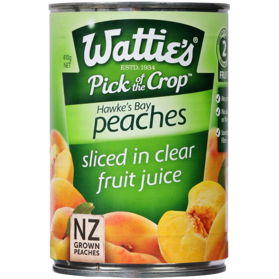 Wattie's Peaches Sliced Clear Juice - Pick of the crop peaches in clear juice are perfect for baking, adding to cereals, as part of dessert, or as a healthy snack. Source of dietary fibre.