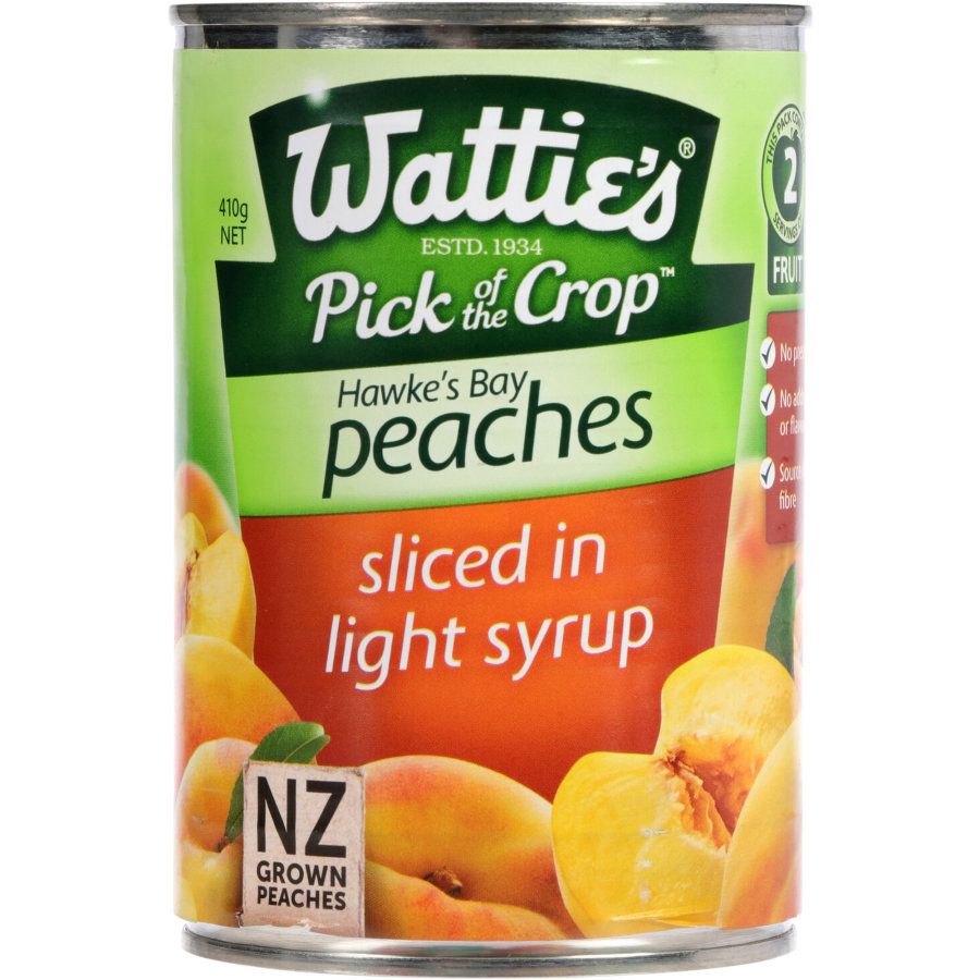 Watties Peaches Sliced In Syrup - Pick of the crop peaches in syrup are perfect for baking, adding to cereals, as part of dessert or as a healthy snack. Source of dietary fibre.