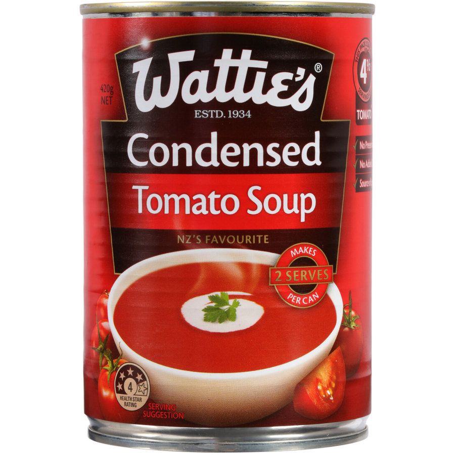 Watties Tomato Soup Condensed - Wattie's condensed tomato soup is 99% fat free. Wattie's condensed soups make a great based to many recipes such as casseroles, stews and pasta dishes