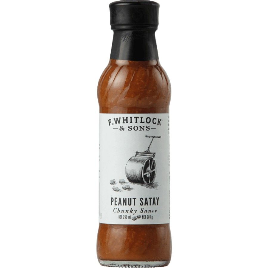 Whitlocks Peanut Satay Sauce - lightly spiced, aromatic satay sauce. Made with those smug devils, peanuts. They think they're so popular. We, peanuts, how do you like being MASHED into a sauce? What's that? You're DEAD? Oh well.
